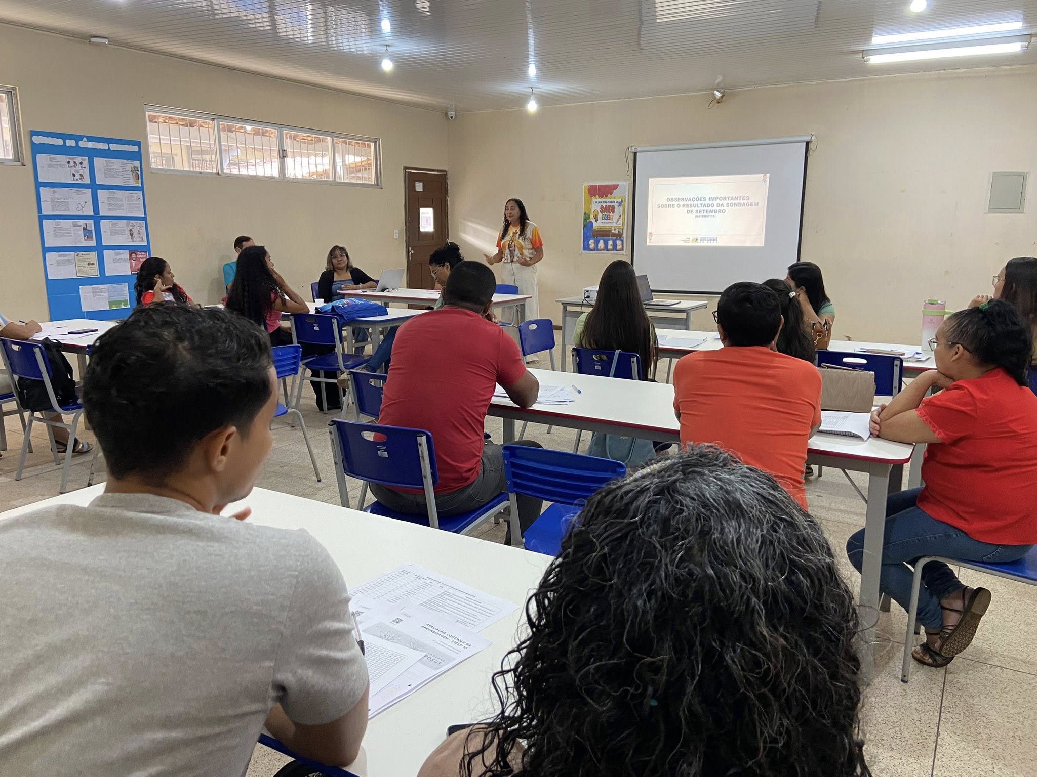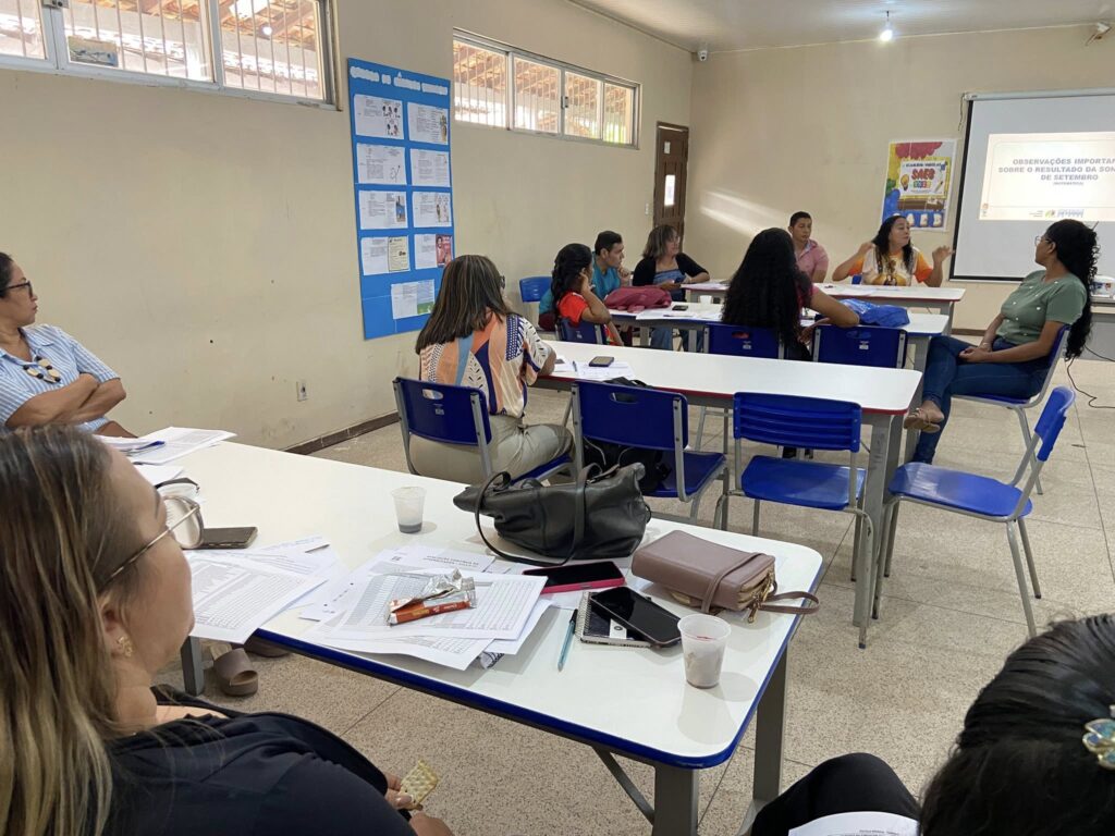 O encontro reuniu os professores do 5º ano das escolas municipais que participarão da próxima edição do SAEB, com o objetivo de analisar os resultados da Sondagem Diagnóstica aplicada em setembro, dentro da plataforma Compromisso Nacional Criança Alfabetizada (CNCA).