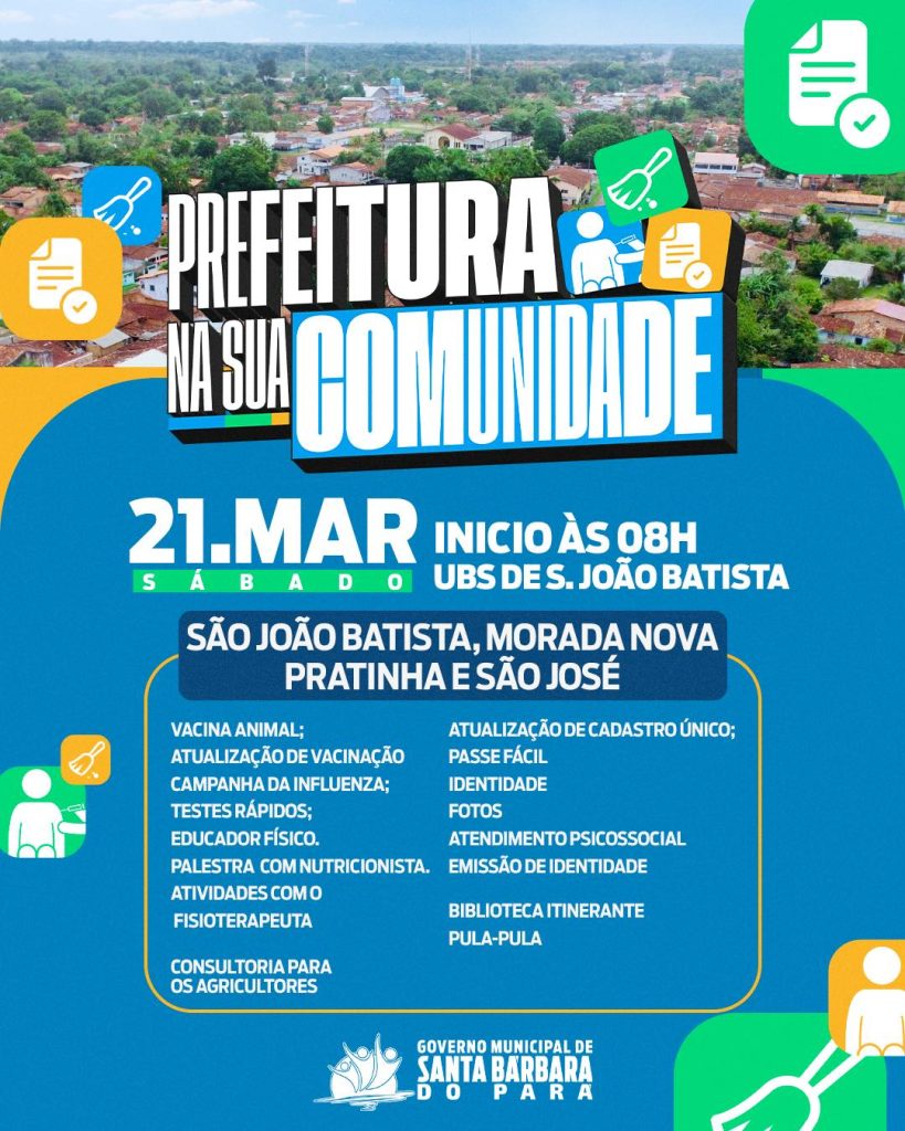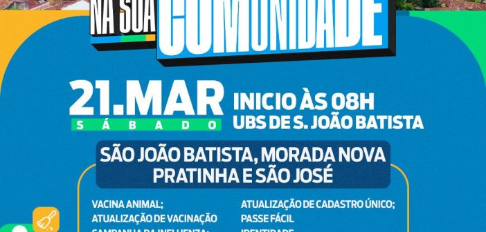 Desta vez, a ação será voltada para os moradores das comunidades de São João Batista, Morada Nova, Pratinha e São José, com atendimentos que vão facilitar o acesso a serviços públicos e promover mais qualidade de vida para todos.