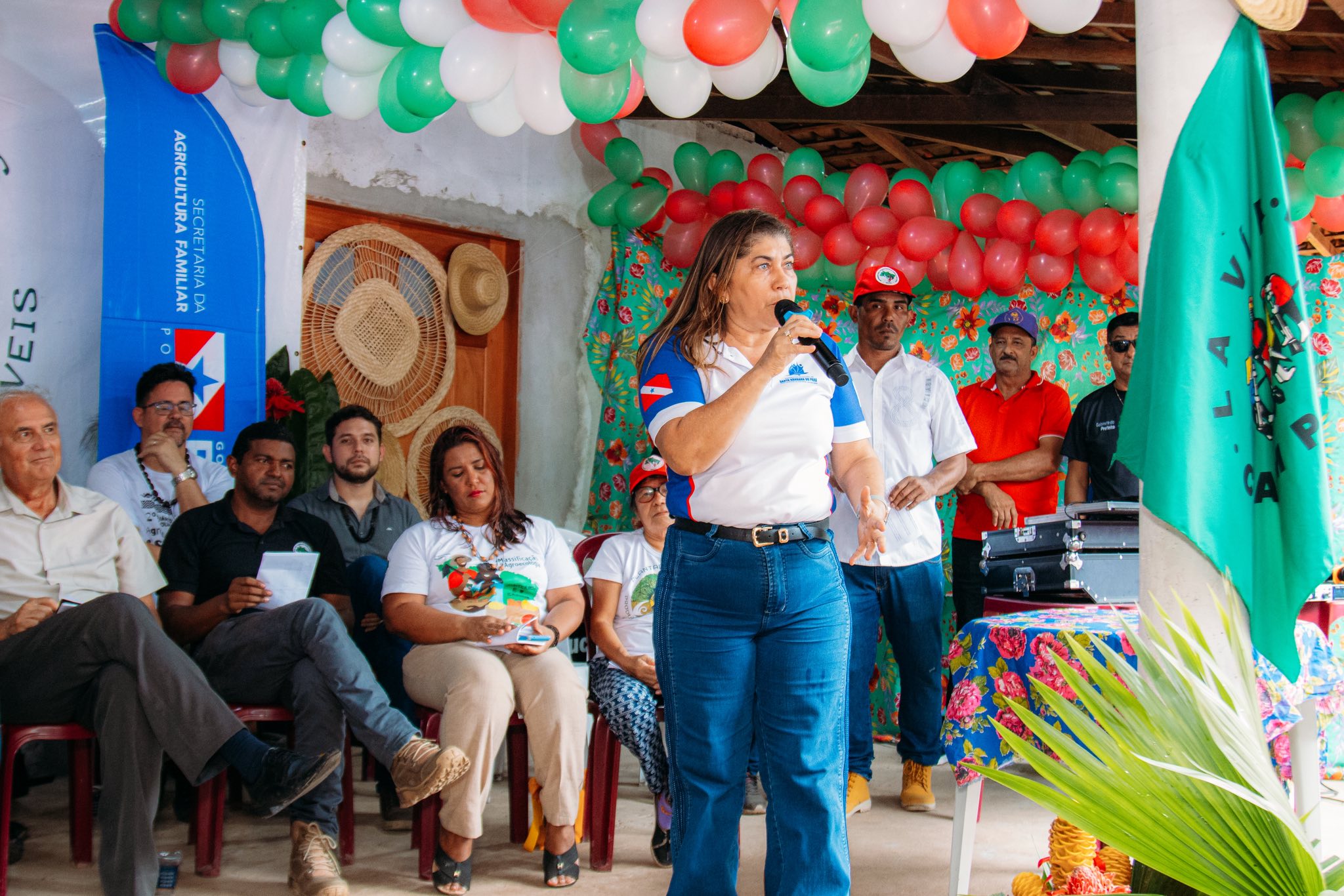 0A programação contou com a presença do prefeito Marcão Colares, da primeira-dama e secretária de Planejamento e Administração, Celma Colares, do senador Beto Faro, da deputada federal Dilvanda Faro, do prefeito de Santa Izabel Neneco Tavares, do vice-prefeito Clovisson Silva, do secretário de Estado de Agricultura Familiar Cássio Pereira, do vice-prefeito de Acará Yuri Faro, além de vereadores, secretários municipais e lideranças do MST.