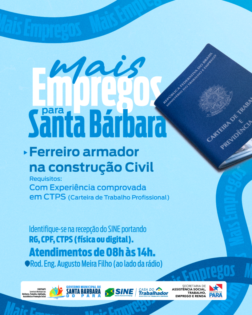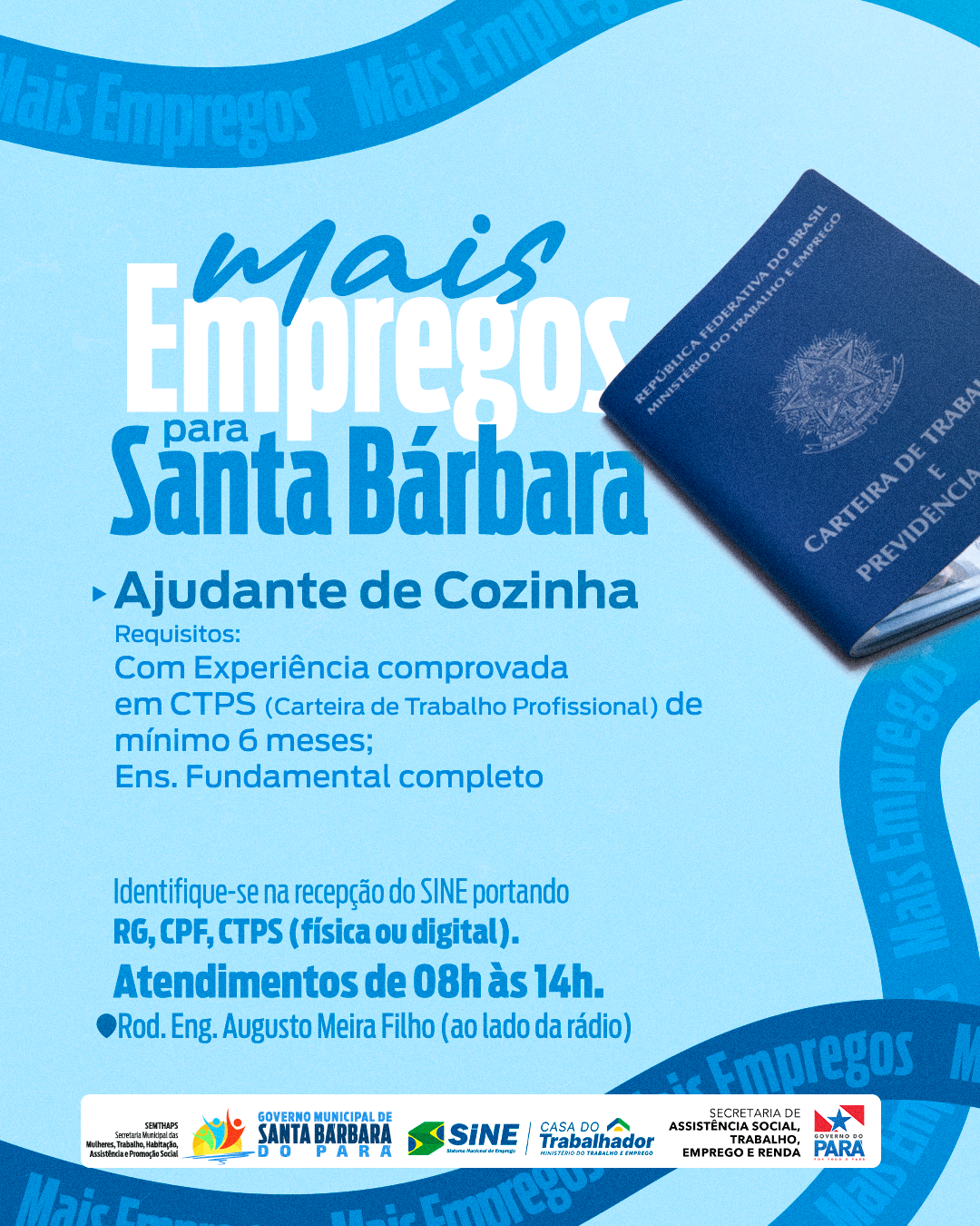 O SINE, a Casa do Trabalhador de Santa Bárbara, já é uma realidade na cidade.
