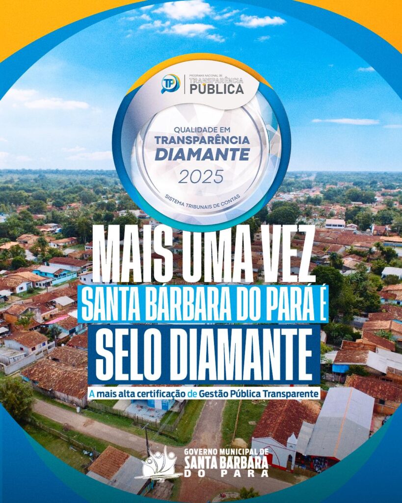 Santa Bárbara do Pará celebra, mais uma vez, uma conquista que reafirma seu compromisso com a boa gestão: o município recebeu novamente o Selo Diamante de Qualidade em Transparência Pública 2025, a mais alta certificação concedida pelo Sistema dos Tribunais de Contas do Brasil.